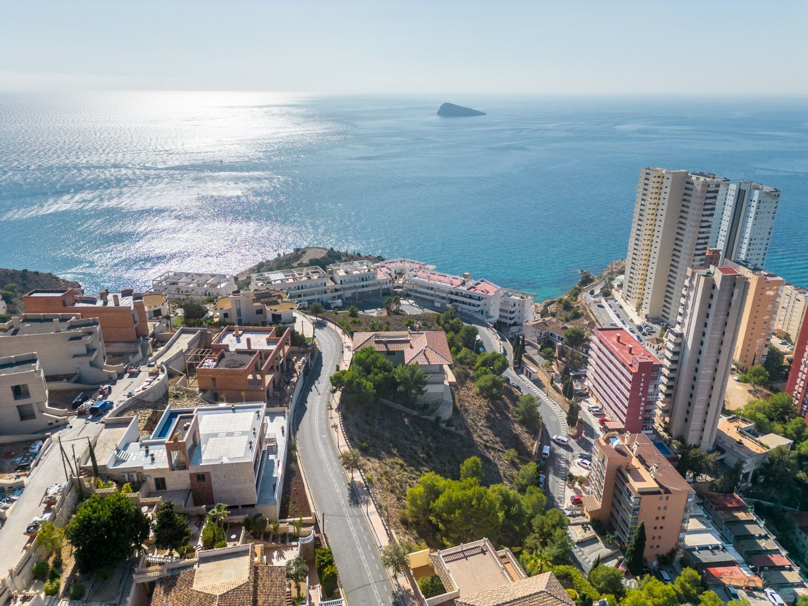 La parcela se encuentra en un enclave único, ofreciendo privacidad y exclusividad a sus residentes. El terreno, con su característico desnivel, permite que la futura villa se eleve, dominando con majestuosas vistas panorámicas de toda la bahía de Benidorm. Esta posición estratégica garantiza no solo privacidad sino también una experiencia visual sin igual.