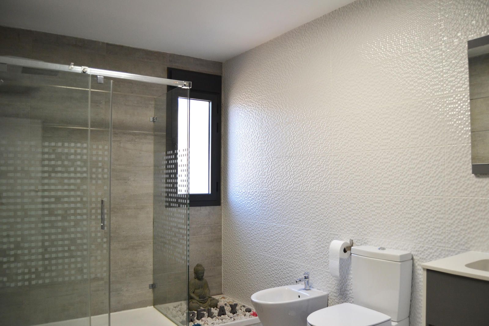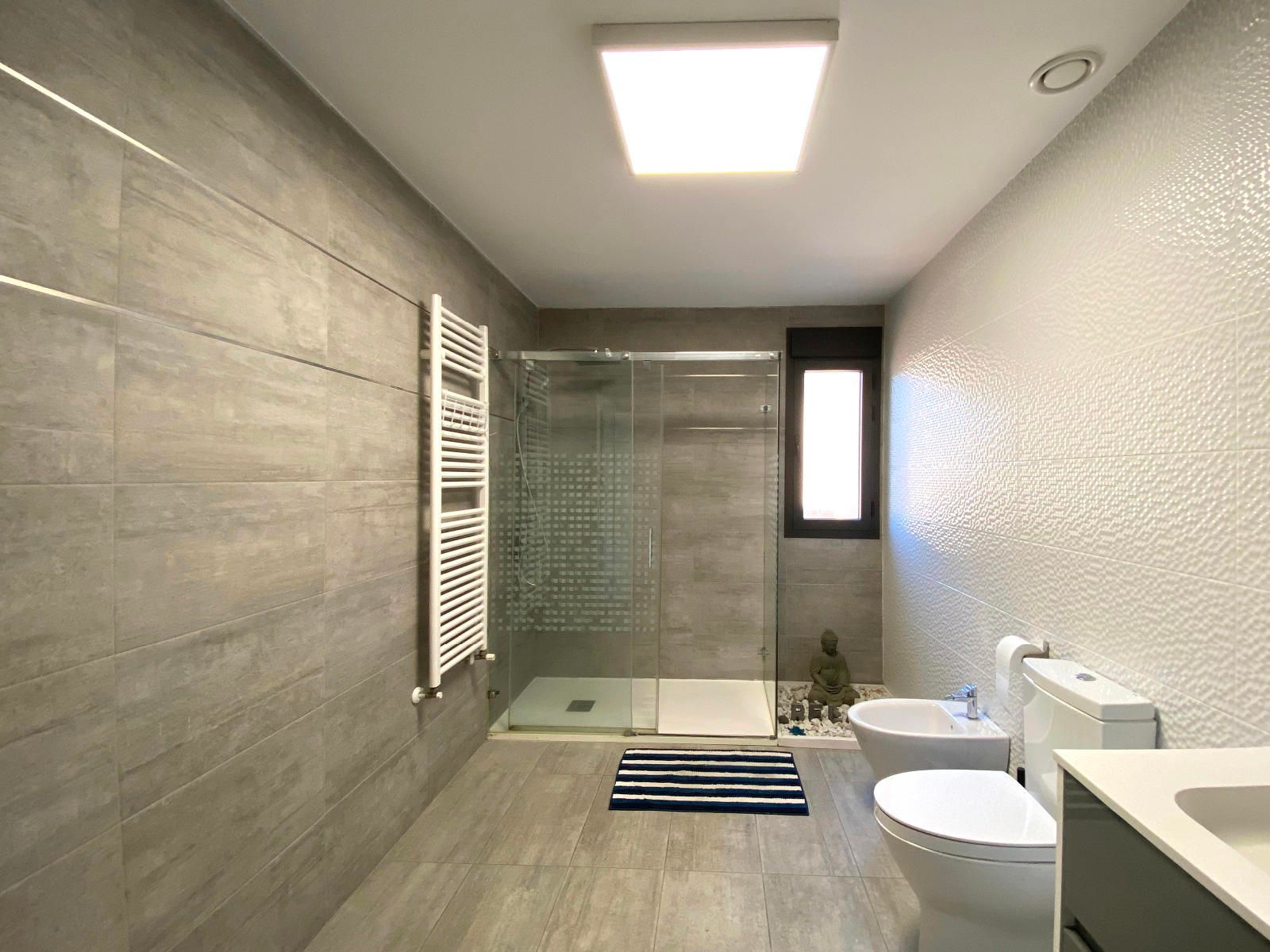Los 4 baños de la vivienda están completamente equipados y actualizados. Dos de ellos cuentan con ducha moderna con mampara, mientras que otro dispone de bañera, ideal para momentos de relajación. El diseño en tonos neutros y la calidad de los materiales transmiten frescura y elegancia.