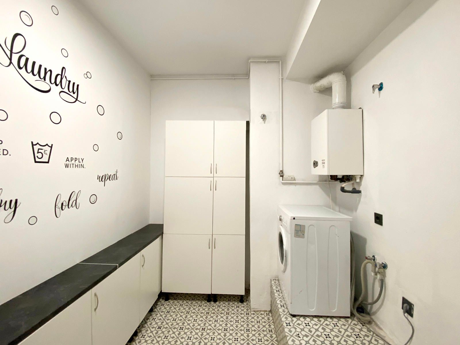 La casa también incluye un cuarto de lavandería, muy práctico para la organización del hogar, y diversos espacios de almacenaje gracias a los armarios empotrados.
