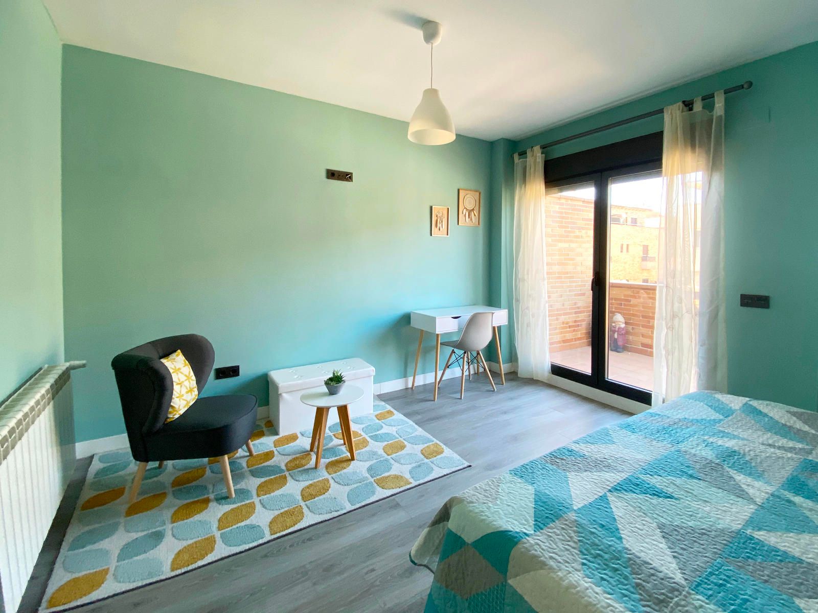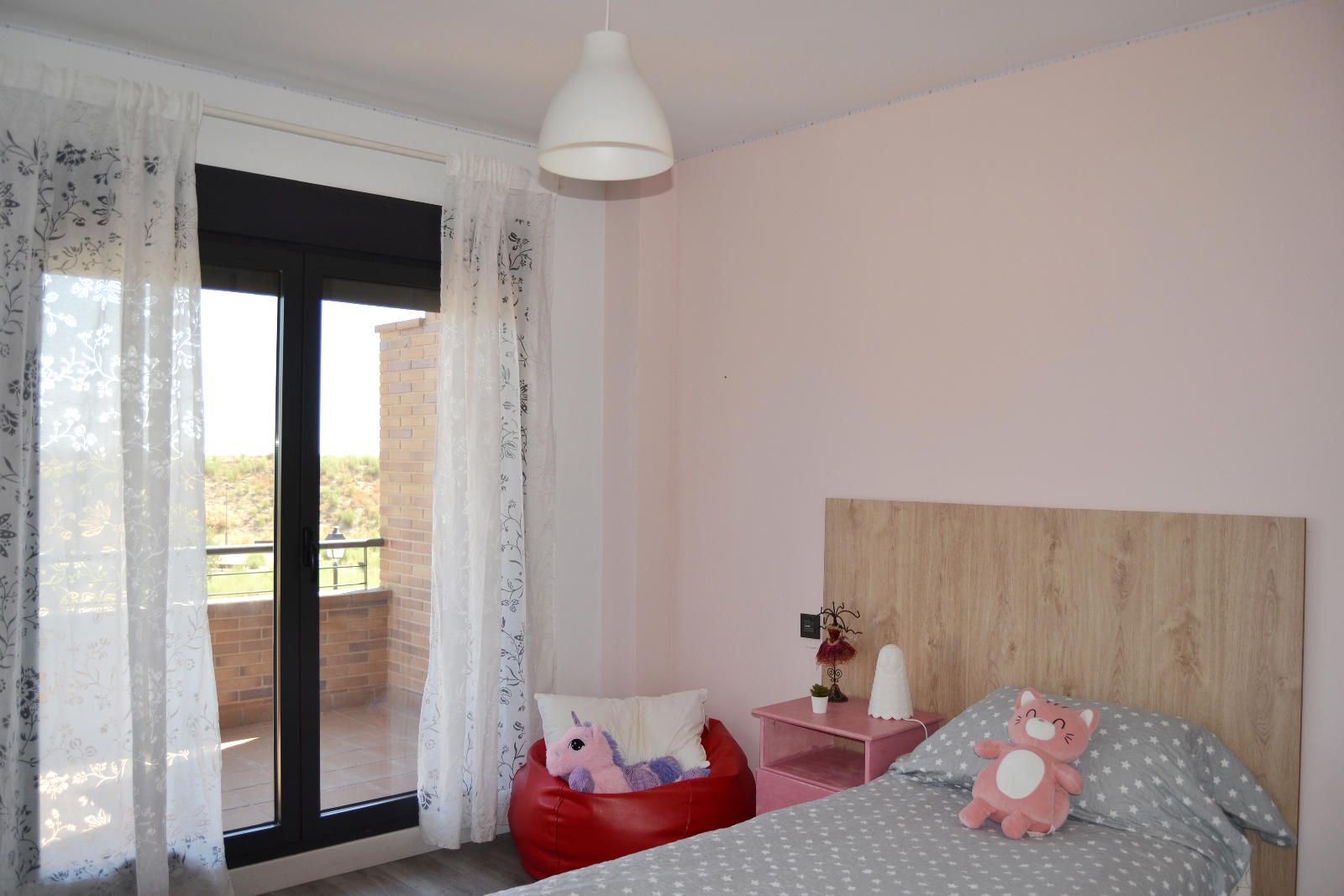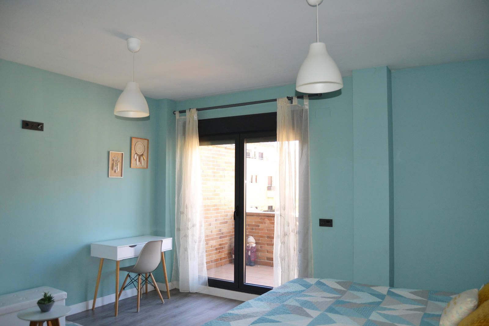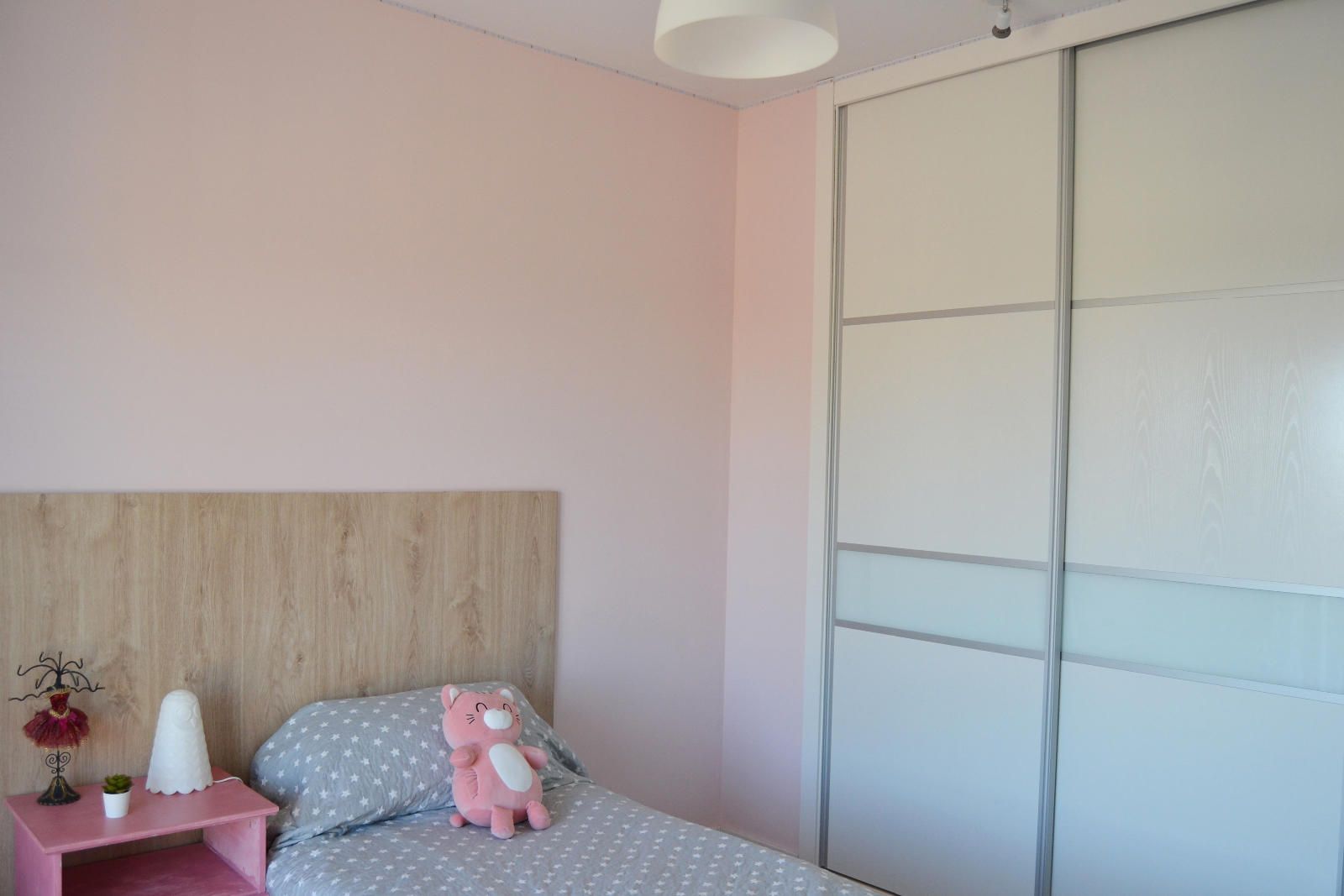 Otro de los dormitorios también cuenta con terraza, lo que lo convierte en un espacio flexible que puede destinarse tanto a habitación como a despacho o sala personal. Las habitaciones infantiles y juveniles están decoradas con cariño, con colores suaves y mobiliario actual.