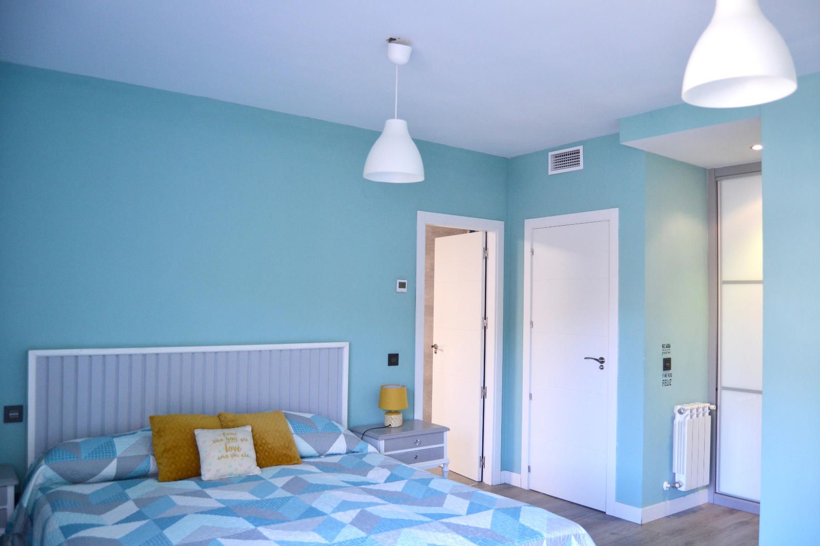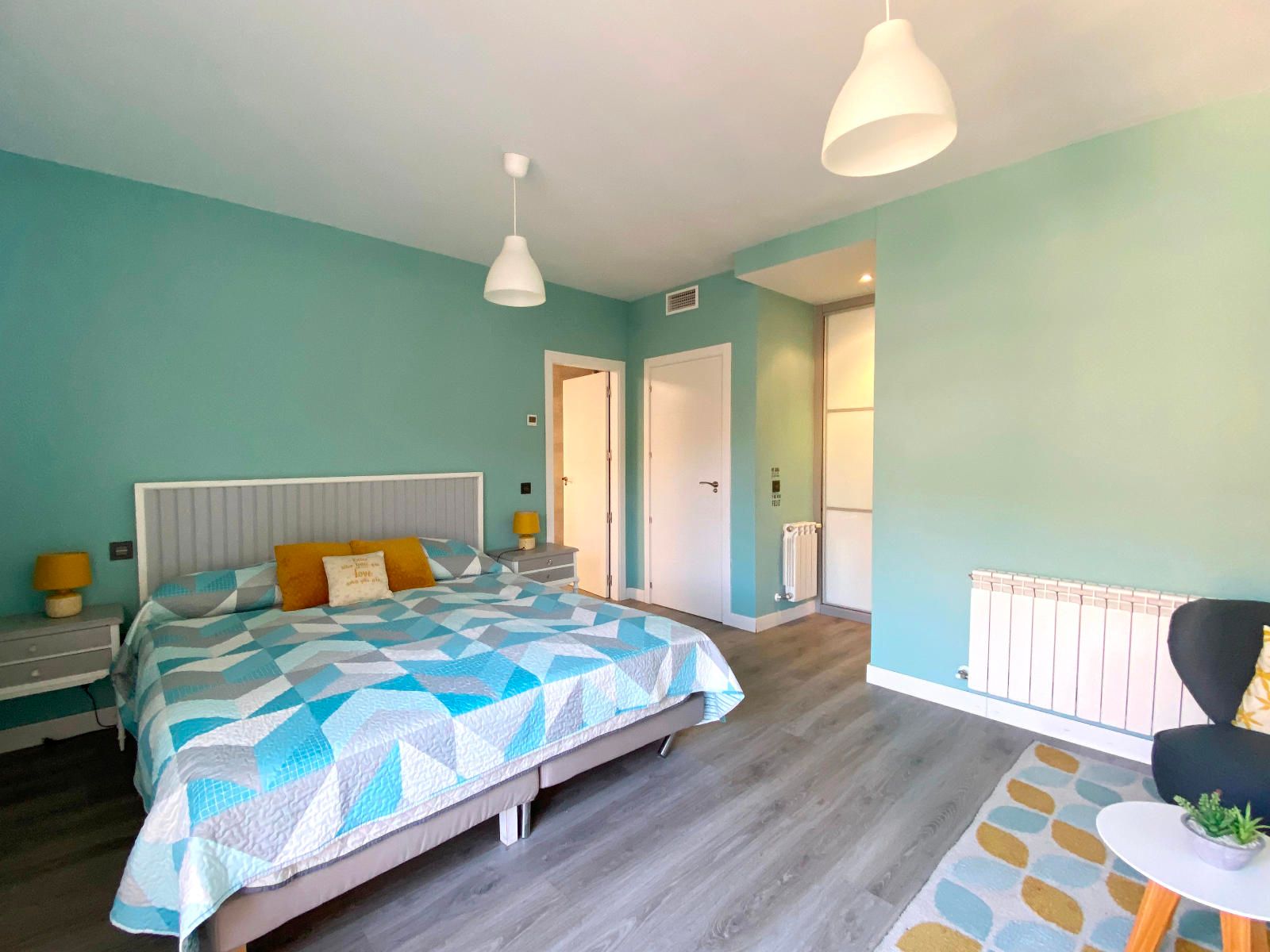 La vivienda dispone de 4 dormitorios, todos espaciosos y luminosos. El dormitorio principal se presenta como una auténtica suite, con cama de gran tamaño, decoración en tonos relajantes y acceso a una terraza privada, perfecta para disfrutar del sol o un café matutino. El mobiliario y la decoración están cuidados al detalle, logrando un equilibrio entre modernidad y calidez, lo que convierte cada estancia en un espacio acogedor.