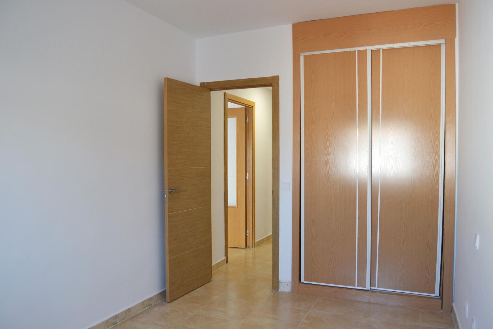 El dormitorio principal es un refugio de paz, con unas dimensiones generosas que permiten la instalación de una cama doble y otros muebles sin problemas de espacio. Cuenta con un armario empotrado de grandes dimensiones y puertas correderas, ofreciendo una solución de almacenamiento óptima y discreta. La luz natural entra a través de una amplia ventana, garantizando una excelente ventilación y luminosidad. Las paredes blancas y los suelos de gres continúan el hilo conductor del resto de la vivienda, aportando una sensación de uniformidad y tranquilidad.