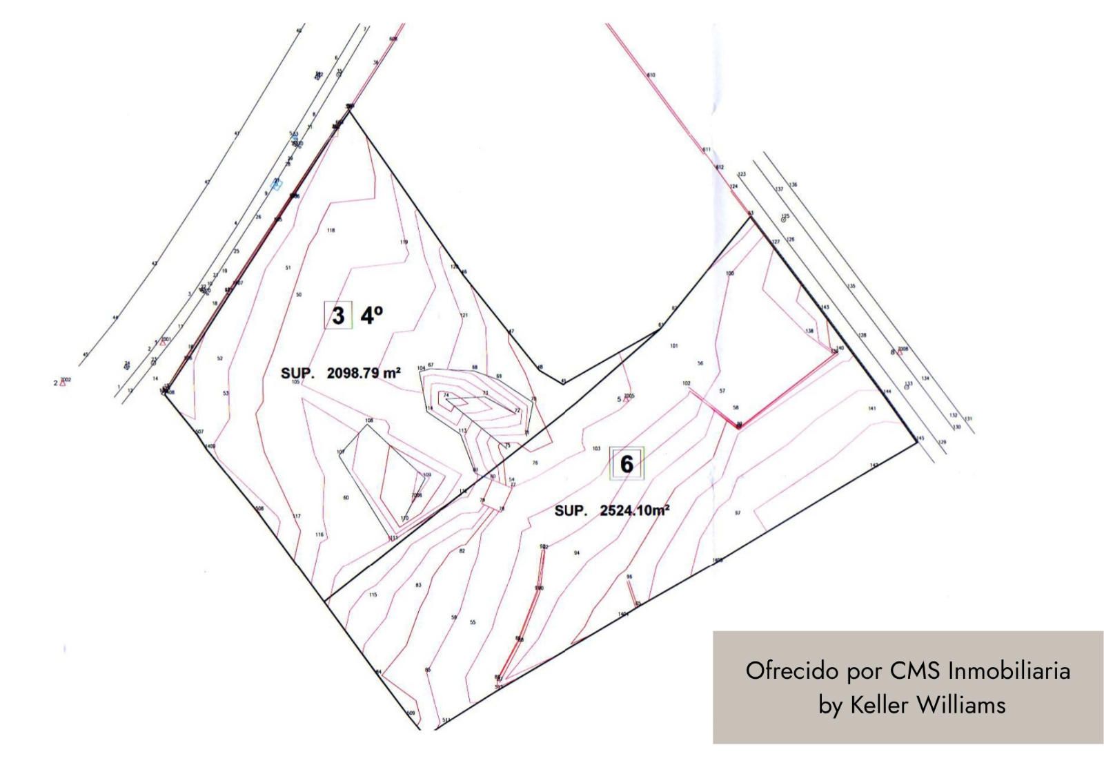 Topografía representada con curvas de nivel, permitiendo un estudio técnico detallado para edificabilidad y drenaje.