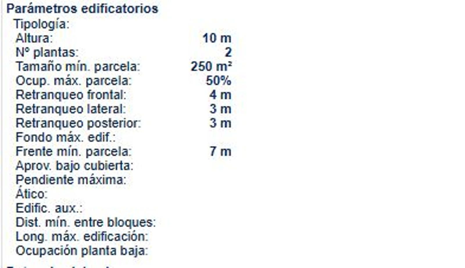 La normativa urbanística permite la construcción de un chalet independiente con una edificabilidad máxima de 217m2 sobre rasante, de 2 plantas y 10 metros de altura, con una ocupación máxima del 50% de la superficie y amplios retranqueos que garantizan privacidad y amplitud.