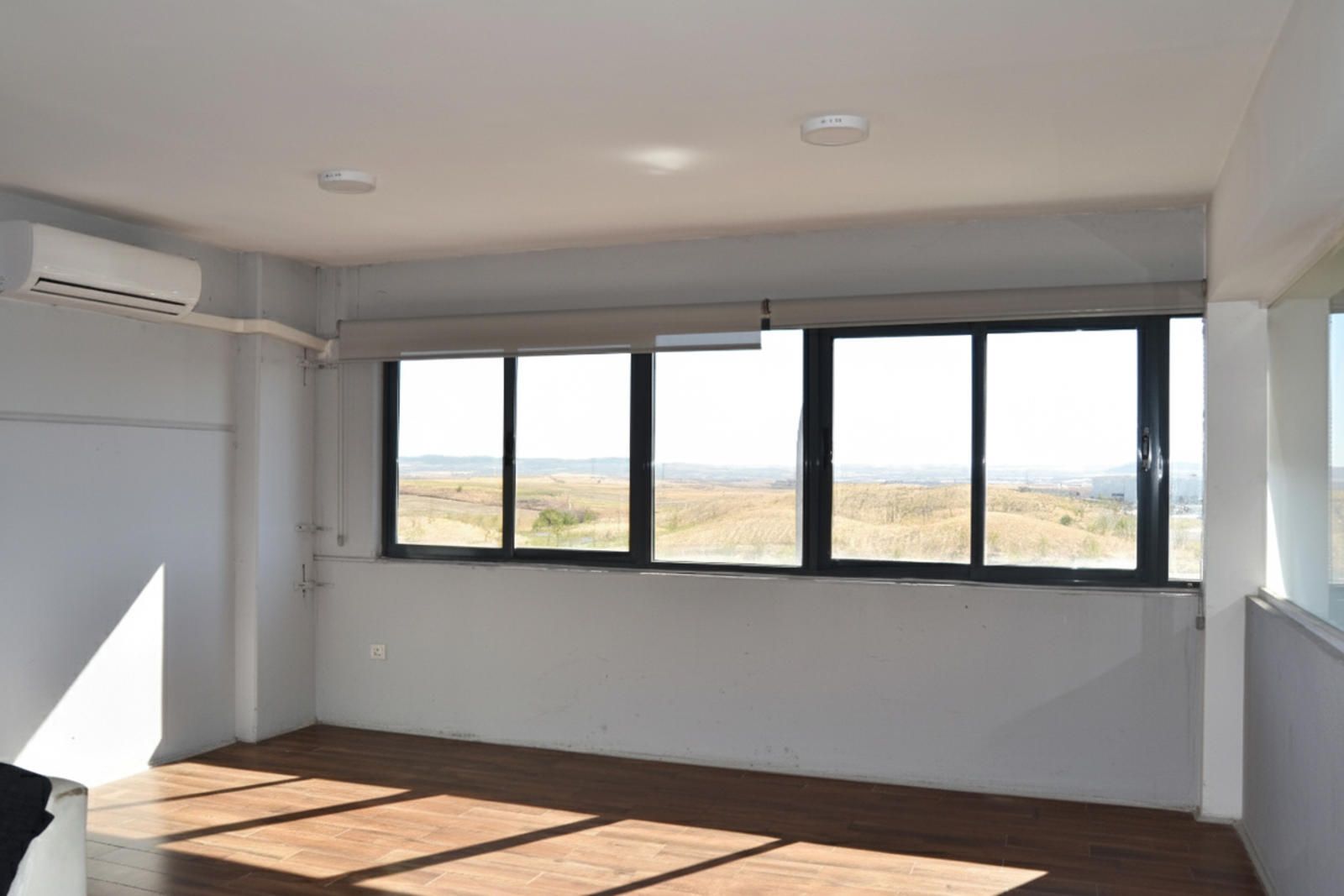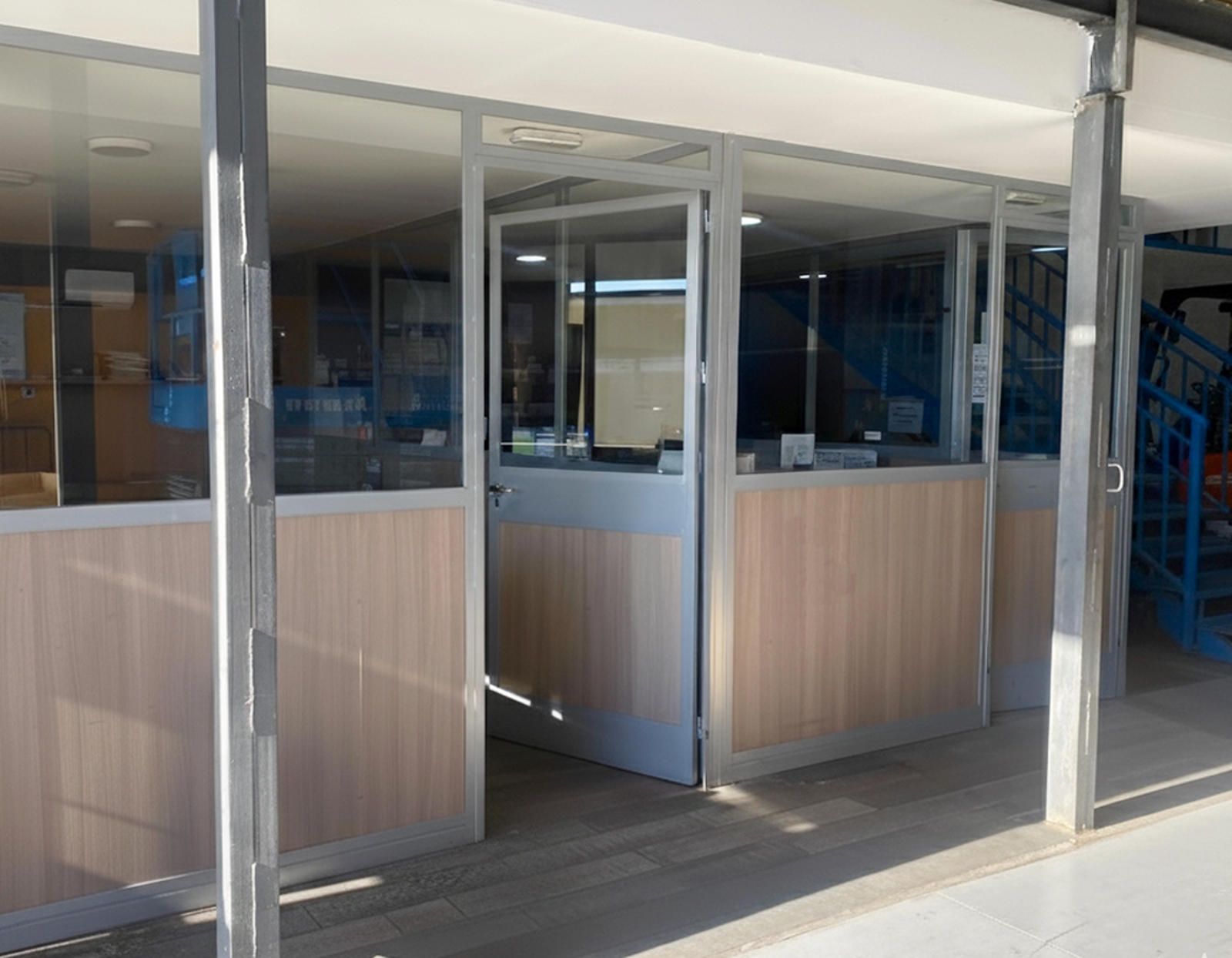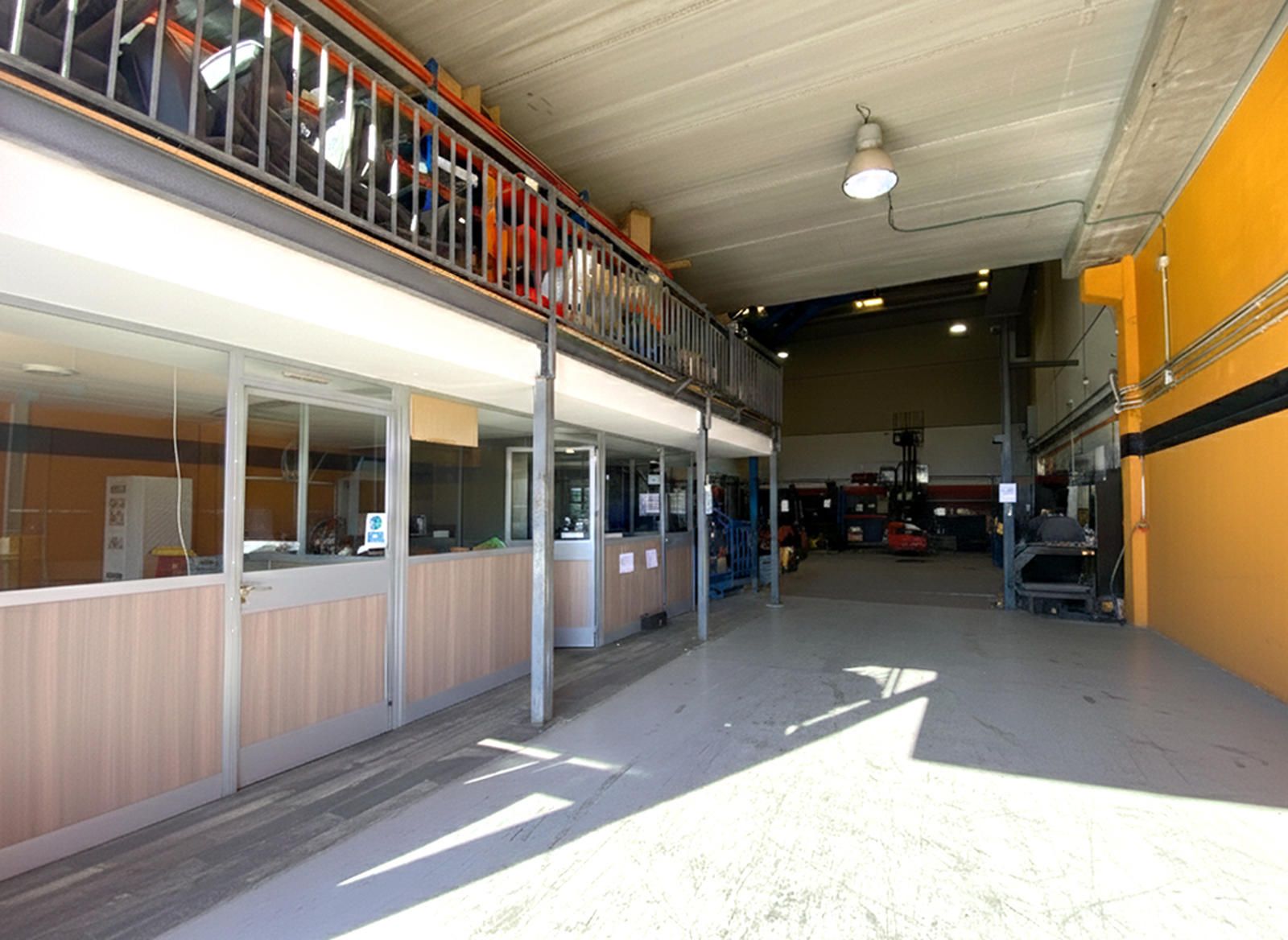La segunda planta es el área de gestión por excelencia de esta propiedad, pensada para la parte administrativa y de oficinas. Aquí encontramos un total de cuatro salas, todas ellas diseñadas para ofrecer un entorno de trabajo productivo y confortable. Una de las salas ha sido acondicionada como una oficina moderna con divisiones de cristal y madera, lo que permite la entrada de luz natural y mantiene la sensación de amplitud. Cuenta con iluminación técnica y sistemas de climatización, asegurando un ambiente de trabajo óptimo. Otra de las salas destaca por su tamaño y luminosidad, gracias a sus amplios ventanales que ofrecen vistas despejadas del polígono. Este espacio, con suelo de tarima flotante, es ideal para una sala de juntas, un área de trabajo colaborativo o la oficina de dirección.