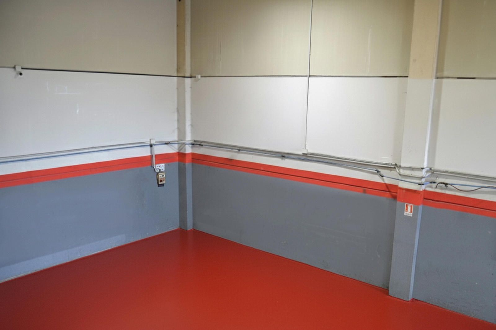 La zona de almacenamiento es un verdadero lienzo en blanco para la organización. Su suelo liso, no solo facilita la limpieza, sino que también soporta el uso intensivo de maquinaria como carretillas elevadoras. Las paredes, en una combinación de gris y rojo, ofrecen un fondo neutro y moderno para la estantería o la distribución de mercancía. Esta área representa el corazón de la operatividad de la nave, con una capacidad volumétrica notable.